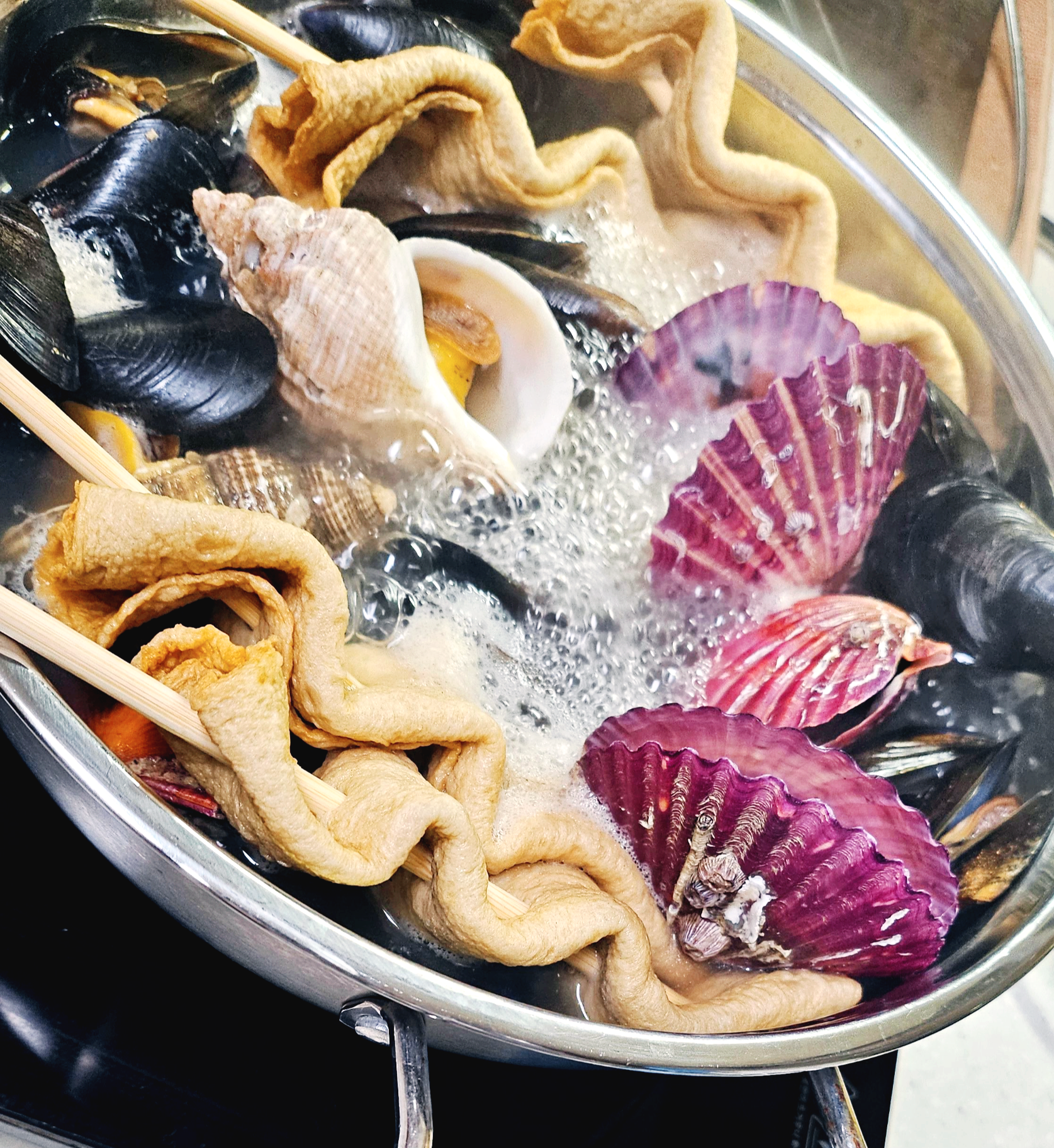- 조리 순서의 재구성: 설명서에는 홍합과 가리비를 먼저 익히라고 되어 있으나, 해산물은 오래 끓일수록 살이 수축하고 질겨진다. 육수가 끓기 시작하면 골뱅이를 먼저 넣어 깊은 맛을 내고, 홍합과 가리비는 마지막에 넣어 입을 벌릴 때까지만 짧게 익히는 것을 추천한다.
