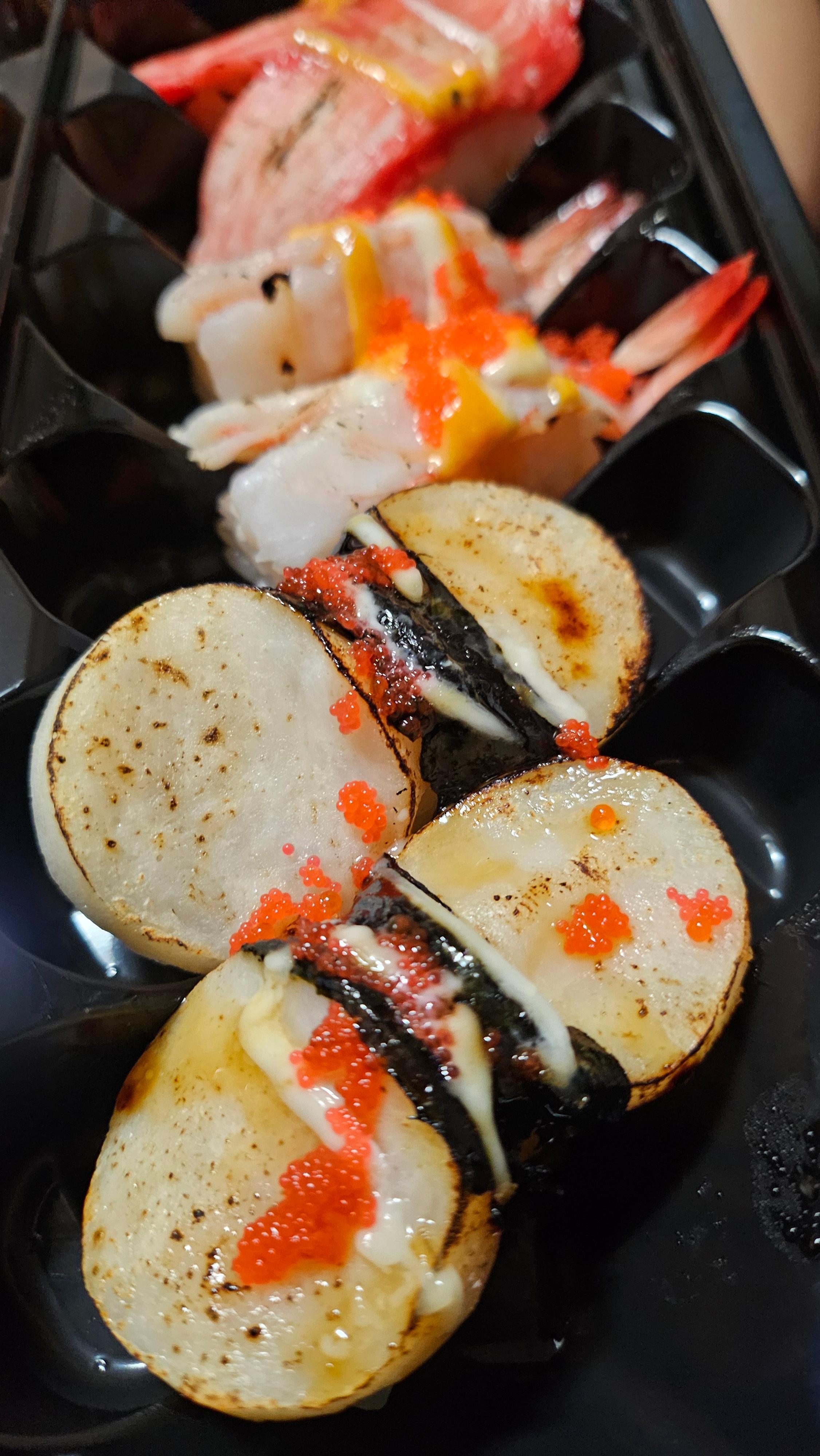 - 구운 스시 및 토핑 라인: 구운 연어, 장어, 구운 새우, 구운 게살, 구운 관자, 구운 계란, 구운 유부, 소고기